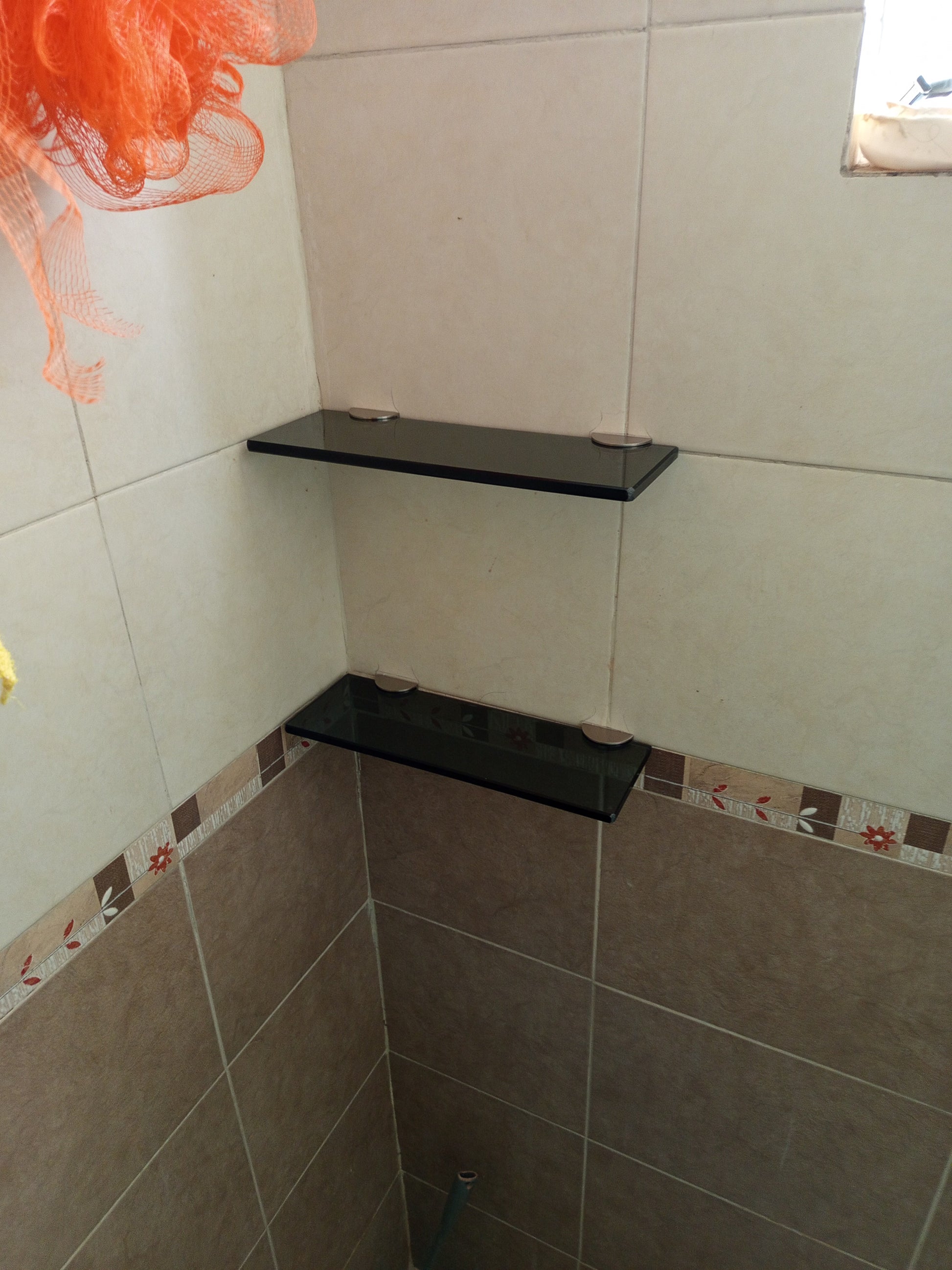 Repisas de vidrio filtrasol de 9 mm con cantos pulidos peri etral con herrajes de acero inoxidable para su fijación